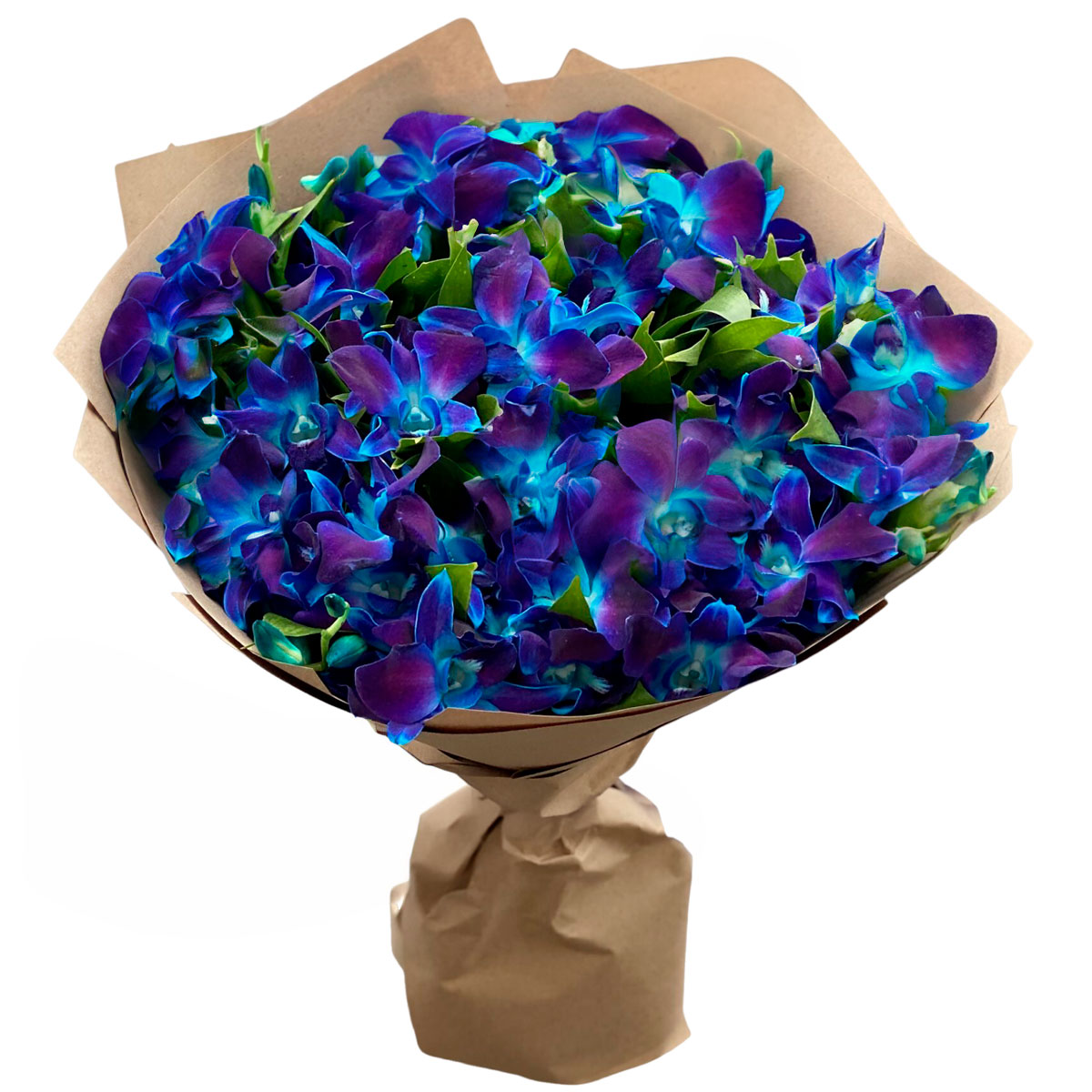 Эффектный букет в ярких синих и фиолетовых тонах. Дендробиумы синие создают атмосферу загадочности и изысканности. Упакован в крафт-бумагу, подчёркивающую насыщенность цветов. Идеально подойдёт для романтического вечера для любимой.
