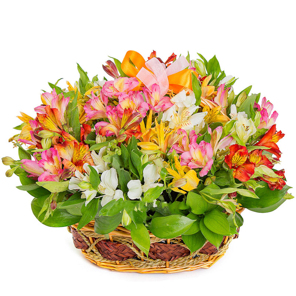 Корзинка с альстромериями «Солнечный Карнавал» с гарантией качества, цены и быстрой доставки!