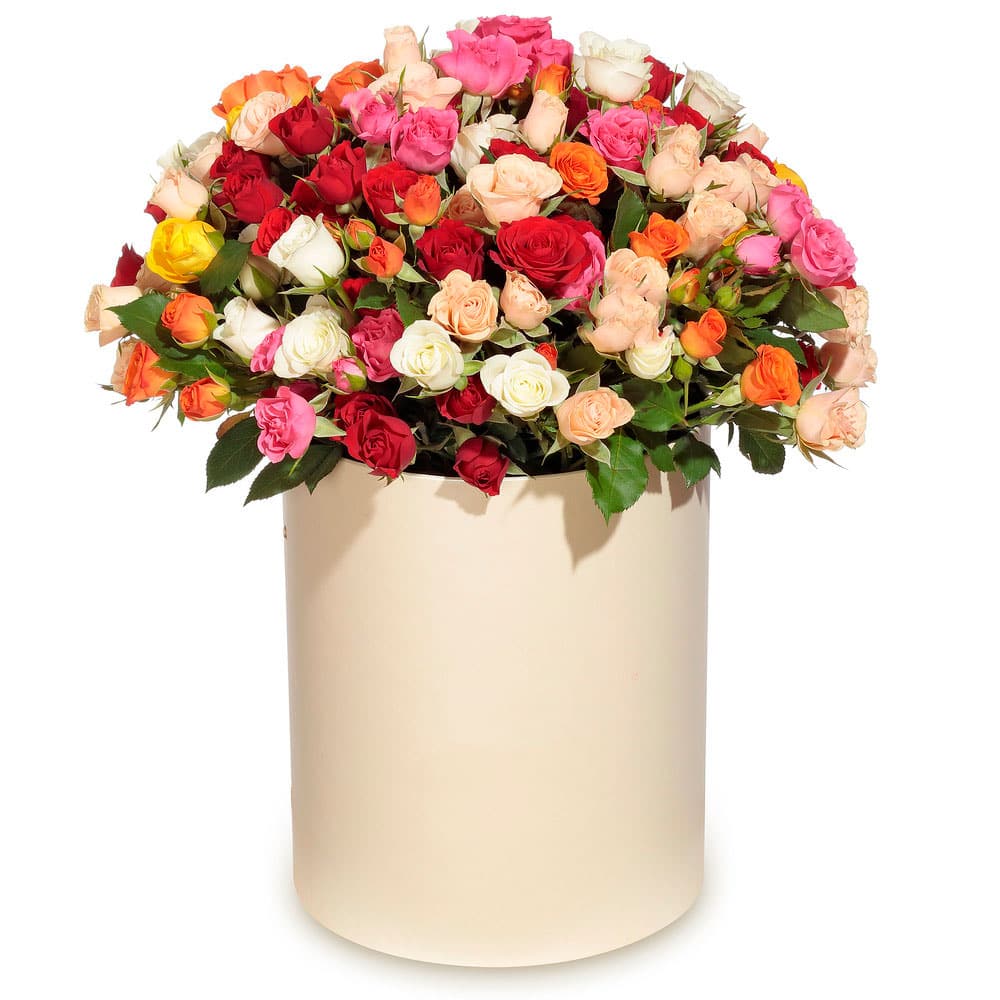 Кустовые розы в коробке «Очарование» с гарантией качества, цены и быстрой доставки!