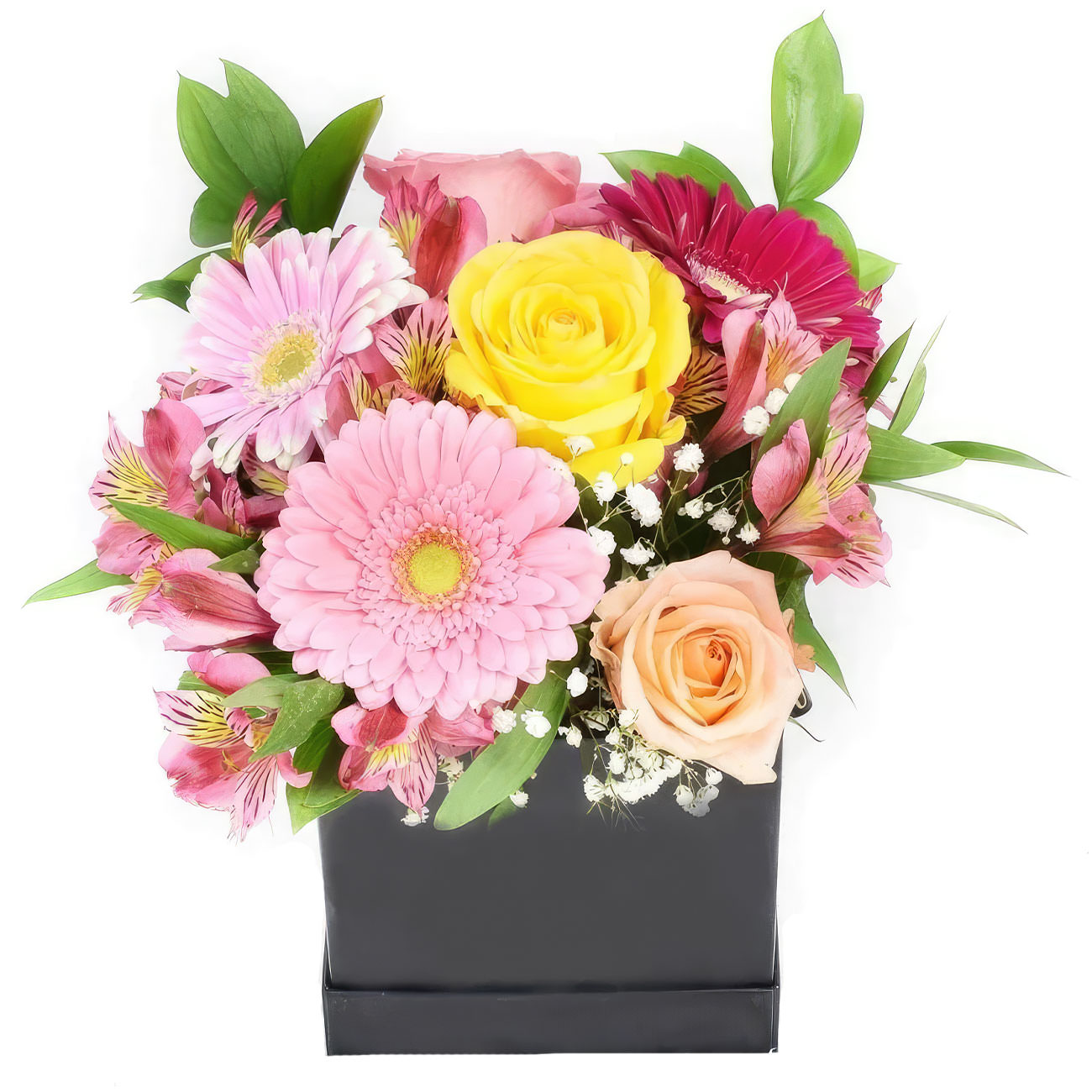 Цветы в квадратной коробке «Элегантный рассвет» с гарантией качества, цены и быстрой доставки!
